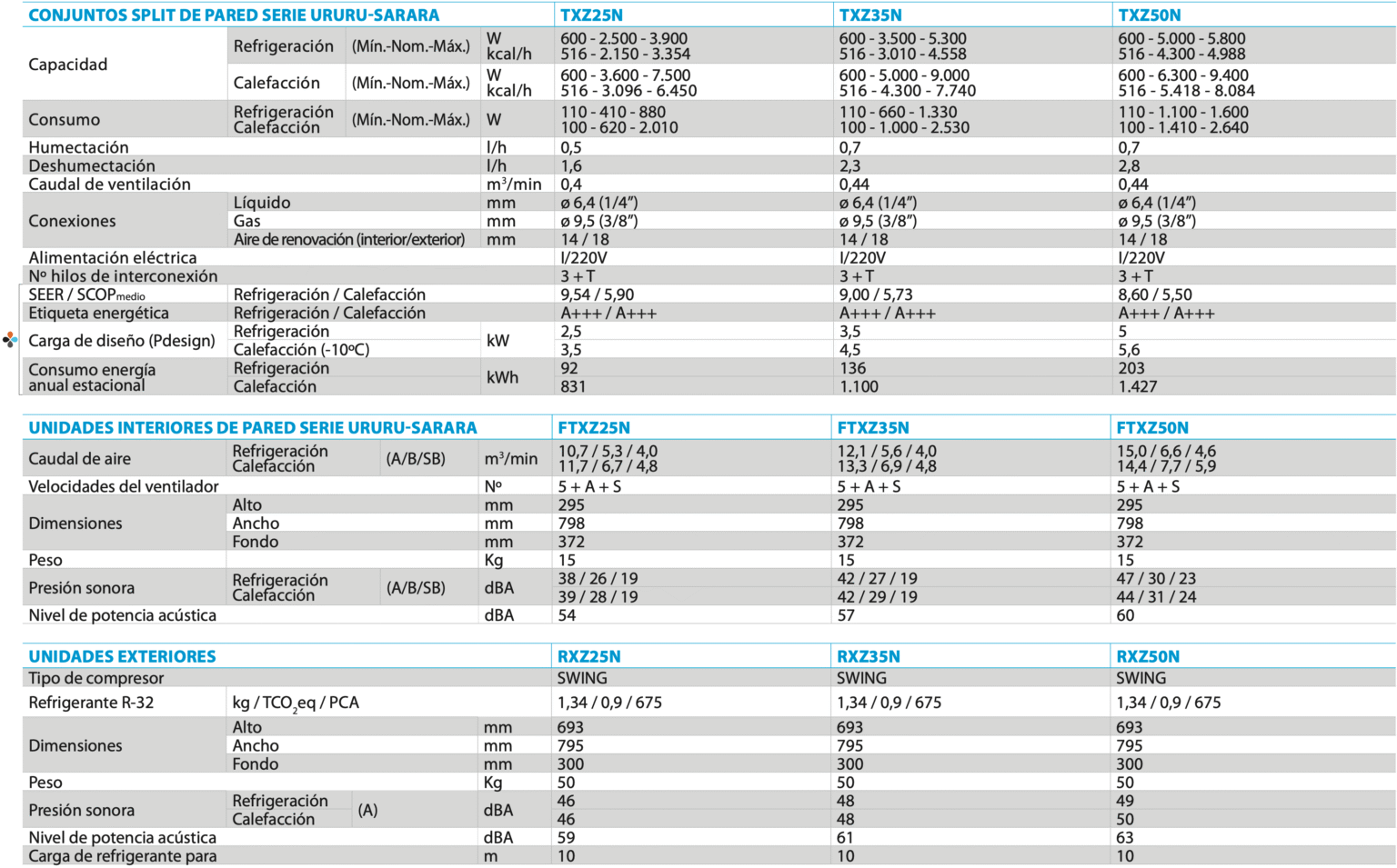 - Consumo energía anual estacional: Refrigeración 92 kWh - Calefacción 831 kWh